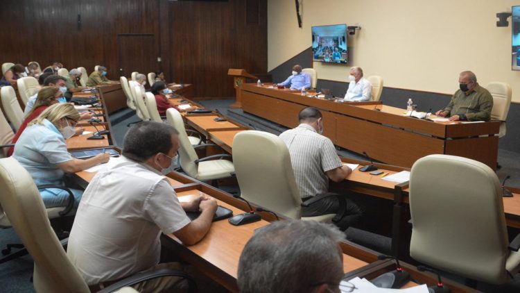Seguidamente, en el Palacio de la Revolución, también encabezada por el Presidente Miguel Díaz-Canel Bermúdez y dirigida por el Primer Ministro Manuel Marrero Cruz, con la presencia del vicepresidente de la República Salvador Valdés Mesa, se realizó la reunión del Grupo Temporal de Trabajo del Gobierno para el enfrentamiento a la COVID- 19.