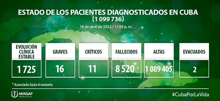Parte de cierre del día 16 de abril a las 12 de la noche