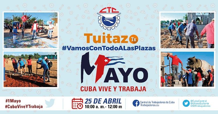 Se emplearán las etiquetas #1Mayo #CubaViveYTrabaja #VamosConTodo