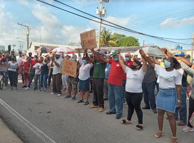 A pequeña escala, pues no son sitios de alta densidad poblacional, los habitantes se congregan portando banderas y carteles, estos últimos muchas veces confeccionados con rusticidad, pero acarreadores de la esencia con la que los pinareños celebran este Día Internacional del Trabajo, multiplicar sus aportes a la economía del país.