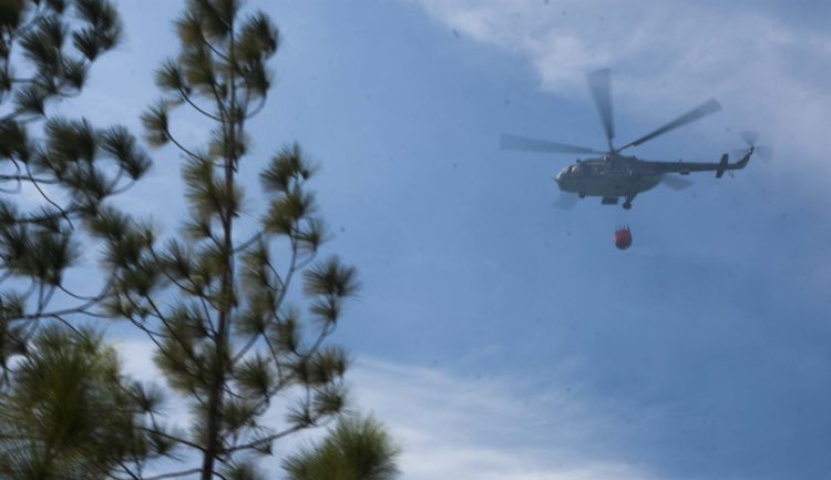 El resultado de la llamada contracandela les permitió contener la expansión del fuego y reciben el apoyo de helicópteros que llevan agua hasta los puntos más álgidos del incendio para evitar la propagación.