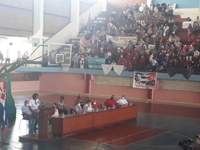 La dirigente sindical reseñó la trascendencia de los más de cuarenta actos celebrados en poblados y comunidades; las 58 plenarias preparatoria; más de un centenar de donaciones de sangre; y las jornadas productivas de aporte a la producción de alimento y la recuperación cañera.