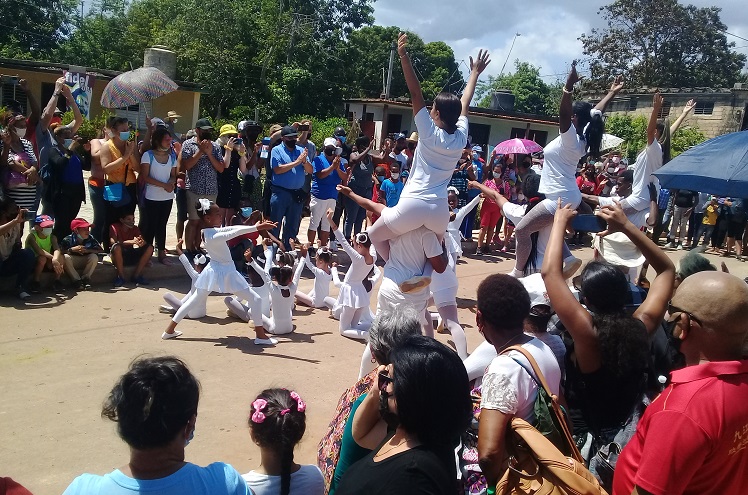 Junto a un grupo de trabajadores de empresas comprometidas con la construcción de un parque, los brigadistas se deleitaron con artistas aficionados de la Casa de Cultura Delfín Fleitas, mientras una agrupación infantil, La Colmenita, de San Cristóbal, otro territorio de la provincia, les sacó más de una sonrisa a los amigos solidarios.