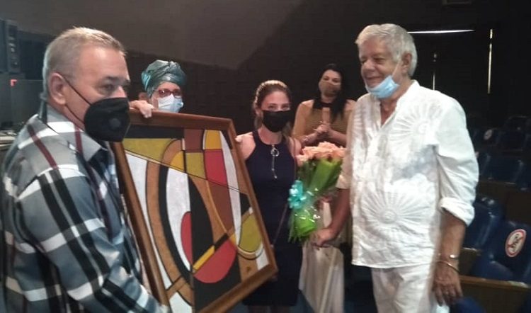 Durante el acto, el FCBC homenajeó al colega Jorge Rivas Rodríguez por su reciente Premio Nacional de Periodismo Cultural José Antonio Fernández de Castro y por sus años de trabajo con este importante organismo. El director general de esa entidad, Arturo Valdés Curbeira, y su directora de Comunicación, Marlene E. Sánchez Márquez, entre otros compañeros, le entregaron al laureado periodista un cuadro abstracto de la destacada diseñadora y pintora Georgina Luisa Riveros Pi; una bellísima guayabera confeccionada por la reconocida firma Blasser y el lujoso Catálogo Lesbia VentDumois, recientemente presentado en la Feria Internacional del Libro; entre otros estímulos.
