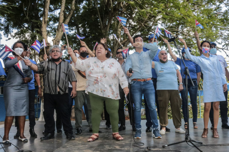 A pesar de esa realidad, la bandera cubana no ha estado sola, —dijo— ha ondeado en las caravanas de solidaridad organizadas en más de 50 ciudades del mundo, varias de ellas estadounidenses, desde donde se han tendido puentes para reclamar el fin del bloqueo. Hoy agradecemos la presencia de ustedes aquí, embajadores de la solidaridad y la esperanza, ejemplo de la hermandad entre los pueblos, de los sentimientos más genuinos de altruismo y desinterés. Junto a ustedes continuaremos creando sueños, materializando ideas, salvando vidas bajo el principio de la una sola salud y por un desarrollo sostenible para nuestras familias y las del mundo.
