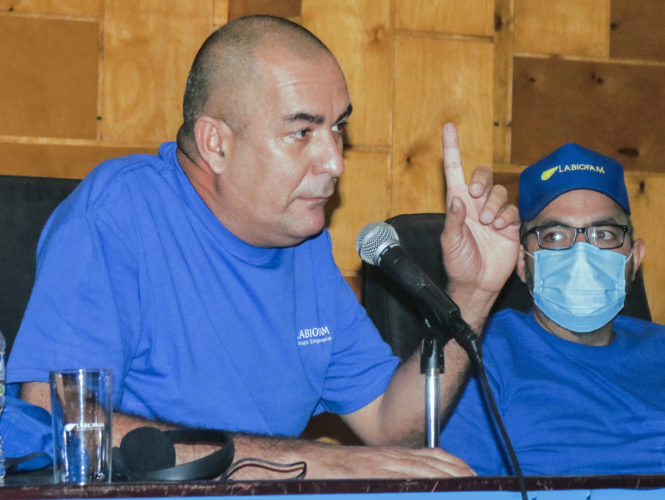 Interrogado por uno de los extranjeros presentes en el encuentro con trabajadores y directivos de Labiofam, el SNTAFT y el ministerio de la Agricultura, Pavel detalló que la industria biofarmaceútica cubana tuvo, en sus momentos iniciales, el apoyo de especialistas de la URSS: “La desintegración de esa nación y la caída del campo socialista nos obligó a caminar con nuestro propio esfuerzo a partir del capital humano que habíamos creado. En los últimos años hemos desarrollado más de 20 nuevas vacunas y medios diagnósticos que responden a las necesidades de nuestro país y que podrían ser exportados”.