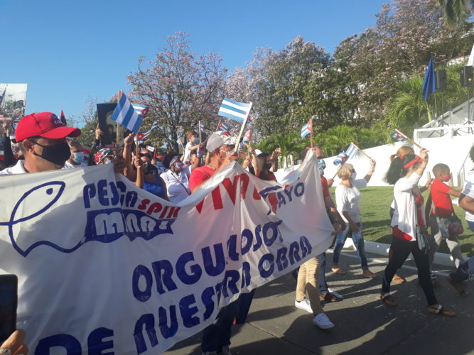 “El desfile ha sido una motivación muy grande, después de dos años nos reunimos en esta fiesta de los trabajadores para reafirmar que Cuba está viva y lo demuestra en todas sus conquistas,” expresó Gilberto Jesús Quincoses Díaz, avezado mecánico industrial de la Industria Pesquera de Sancti Spíritus.