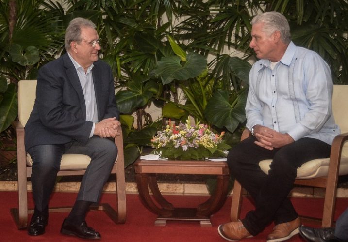 La Presidencia cubana refleja en su cuenta en Twitter que Díaz-Canel le agradeció esta tarde a Fraccari por el apoyo dado al país.
