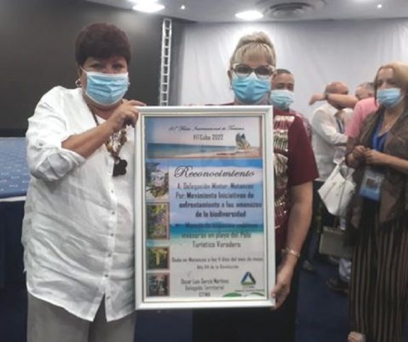 Precisamente al término de la presentación del destino Matanzas, la delegación provincial del CITMA entregó a Fernández Peña un reconocimiento “por el movimiento de iniciativas de enfrentamiento a las amenazas de la biodiversidad y manejo de especies de plantas invasoras en la playa de Varadero”.