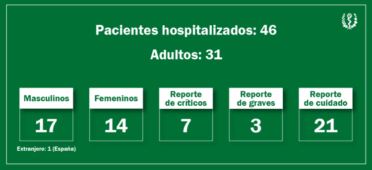 - Hay 45 ingresados, de los cuales están 9 críticos, 6 graves y 30 en cuidados.