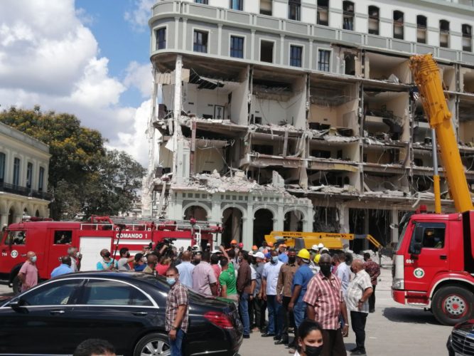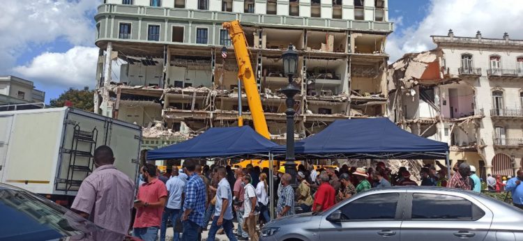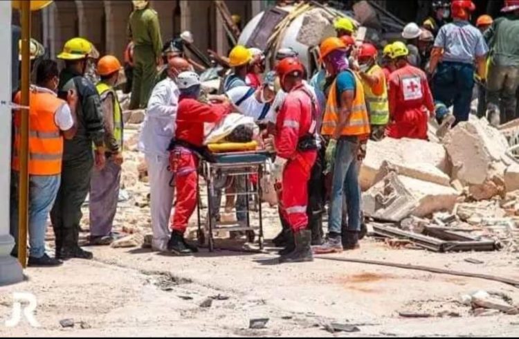 El periodista Dairon Caballero, de Radio Habana Cuba, informa desde las inmediaciones del hotel Saratoga que continúan las labores de rescate y búsqueda de sobrevivientes, o personas fallecidas entre los escombros.