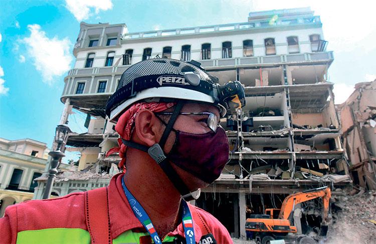 Más cercano, en pleno ajetreo, cruza el joven Sergio Alberto Martínez Medina, integrante de un grupo especializado de operaciones de la Cruz Roja Cubana. Sus 28 años de edad parecen no alcanzar para tantas vivencias. Su esfuerzo ha estado presente en el accidente de aviación de mayo del año 2018, la recuperación tras el huracán Irma, el paso del tornado por La Habana, inundaciones en el litoral…