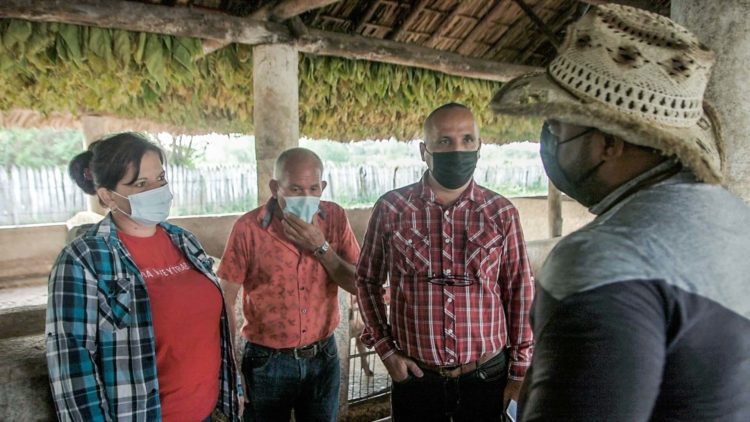 Yamilé Ramos Cordero, primera secretaria del Partido en la provincia recorrió la finca Los Alfonsos, un ejemplo de diversificación dentro de la cooperativa Rafael Ferro. Tabaco, cultivos varios y porcinocultura son algunas de las actividades que aquí se fomentan.