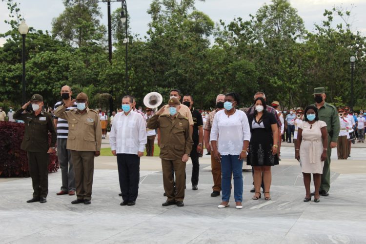 Ofrendas florales a nombre del Líder de la Revolución, el General de Ejército Raúl Castro Ruz, y del Primer Secretario del Partido Comunista de Cuba (PCC) así como del Presidente de la República, Miguel Díaz-Canel Bermúdez, fueron colocadas hoy junto al túmulo funerario del Héroe Nacional, en el cementerio de Santa Ifigenia de la ciudad santiaguera.