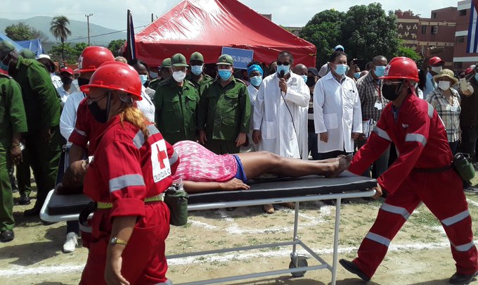 Actualización en torno al comportamiento de la actividad sísmica en el Sur Oriente cubano, intercambio con miembros de una formación de fuerzas y medios de rescate, salvamento y orden interior que responderá ante sismos de gran intensidad, así como un ejercicio de recepción de lesionados por un sismo de gran intensidad en el hospital de campaña emplazado en el área deportiva de Nuevo Vista Alegre, fueron cuestiones desarrolladas este domingo en Santiago de Cuba en el contexto del Meteoro 2022, según refirió en Twitter Monteagudo Ruiz.