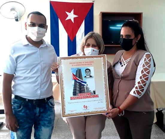 En el acto de homenaje, Leirán Torres Sánchez, miembro del Secretariado Nacional del Sntap, entregó el certificado acreditativo del estímulo que recibieron Xiomara Leyva Pérez y Lisette Fernández Suárez, secretaria de la sección sindical, e impuso la Distinción Enrique Hart Dávalo a tres trabajadores con trayectoria sobresaliente y sostenida por más 20 de años en el sector bancario y otros vanguardias del año fueron homenajeados.