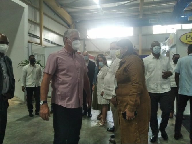 El mandatario cubano recorrió varios stands pertenecientes a empresas nacionales y foráneas, en los cuales dialogó con los directivos y trabajadores, constató innovaciones e inventivas además de interesarse por el avance de los nuevos modelos de gestión económica en el país.