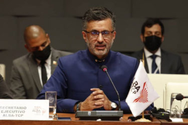 El texto, titulado “ALBA-TCP repudia las exclusiones y trato discriminatorio en la denominada cumbre de las Américas en los ángeles”, fue leído por el secretario ejecutivo de la entidad integracionista, Sacha Llorenti.