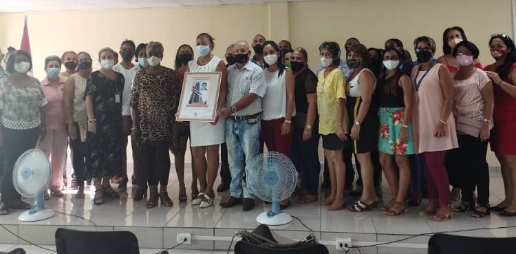 Presentes en el acto de reconocimiento Saida Correa, integrante del Comité Central del Partido y del buró provincial de dicha organización política en la provincia, Yanet Pérez Rodríguez secretaria general del Sindicato de la Administración Pública en Santiago de Cuba.