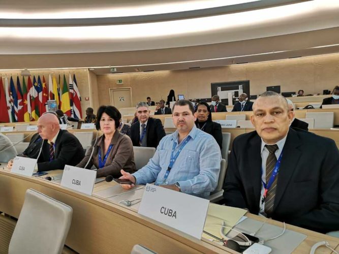 Mediante la red social Twitter, el embajador y representante permanente de Cuba ante los organismos internacionales con sede en Ginebra, Juan Antonio Quintanilla, informó que la titular de Trabajo y Seguridad Social hizo énfasis en las medidas para garantizar la protección en el contexto de la COVID-19.