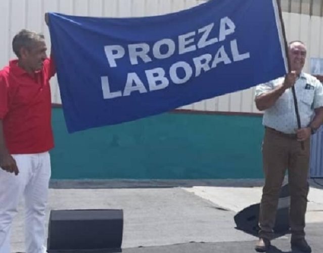 La Bandera Proeza Laboral es otorgada a colectivos que realizan acciones extraordinarias en un tiempo determinado, siendo fieles a los principios de la clase obrera.