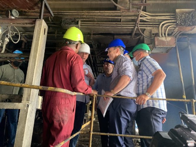 Durante su recorrido por la planta reconoció el compromiso e ingenio demostrado por el colectivo laboral de la industria, frente a la compleja situación que afronta el país en el sector.