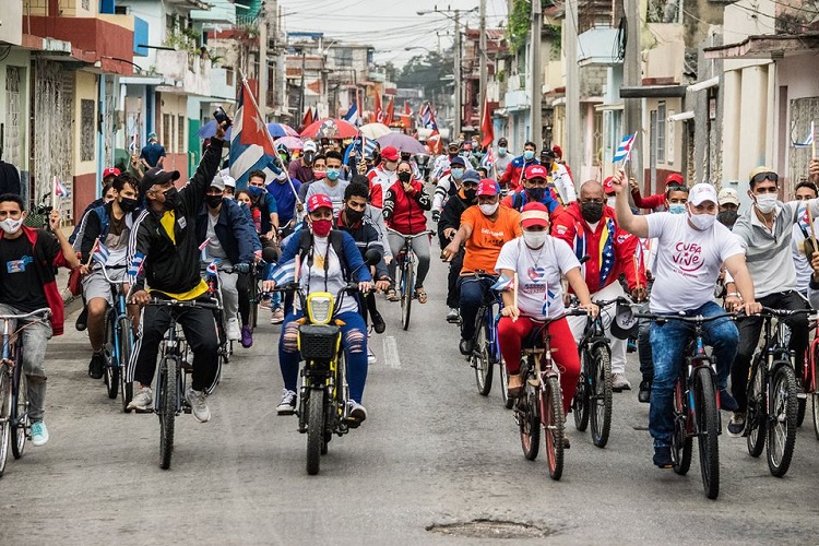 La presentación mediática que se trata de imponer sobre que hay un bloque monolítico fuerte de norteamericanos y de cubanos en Estados Unidos que no quieren nada con Cuba y están a favor del bloqueo, es totalmente incierta —subrayó el Jefe de Estado—, «y se demuestra en lo que ustedes hacen, y donde cada vez participan más personas, sea en las caravanas, en los actos, en las manifestaciones».