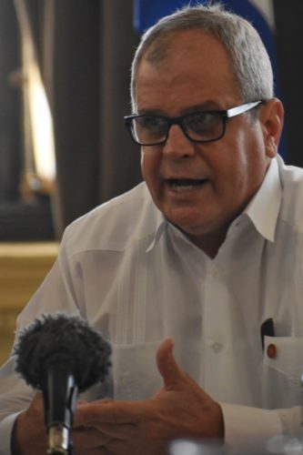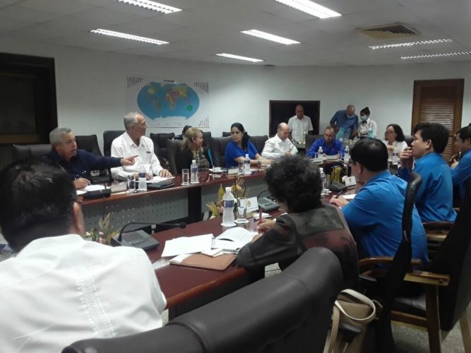 El dirigente cubano presentó a la delegación un bosquejo de la estructura sindical cubana y explicó las principales misiones y desafíos de los sindicatos, enfrentados al recrudecimiento del bloqueo de Estados Unidos y a dificultades internas de burocratismo e ineficiencia del sistema empresarial.