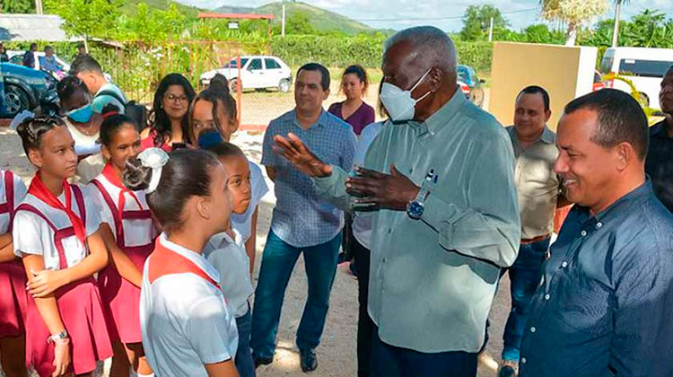 También lo acompañan en su recorrido Julio César Estupiñán Rodríguez, Gobernador en la provincia; Ricardo Suárez Martínez, presidente de la Asamblea Municipal del Poder Popular en el municipio de Holguín; Osmani Viñals García, primer secretario del Partido Comunista de Cuba en la cabecera municipal , y otros funcionarios locales. (Tomado de ACN)