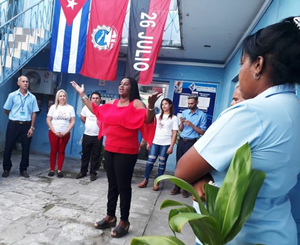 Después de la emotiva ceremonia, Ana Ivis Ana Ivis García Rodríguez, secretaria general del Buró Provincial del Sindicato de las Comunicaciones, la Informática y la Electrónica, explicó: “Nos convocan dos hechos trascendentes en la historia de Cuba: el advenimiento del glorioso 26 de Julio, fecha que recuerda el asalto a los cuarteles Moncada y Carlos Manuel de Céspedes y la victoria conquistada ese día de 2021 por nuestro pueblo y sus trabajadores frente a los hechos vandálicos ocurrido en varias ciudades de Cuba organizados y financiados desde los Estados Unidos”.