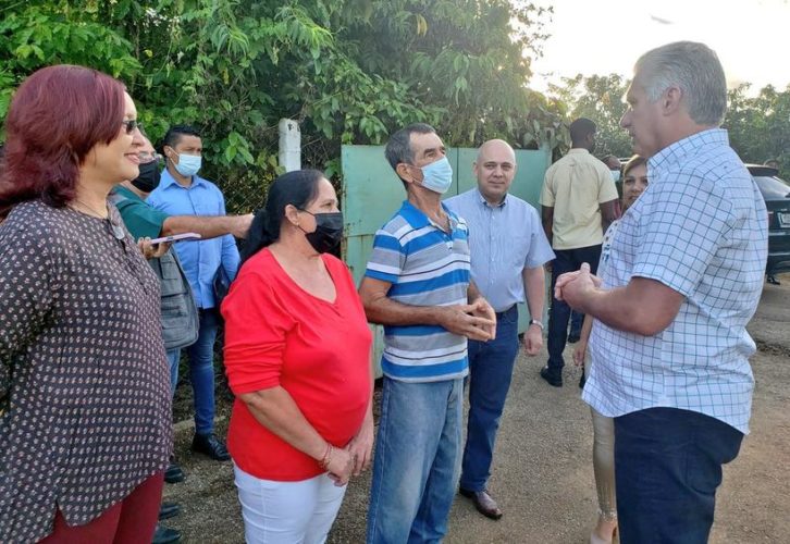 Informa el PCC en Twitter que acompañan a Díaz-Canel, el miembro del Buró Político y secretario de Organización, Roberto Morales Ojeda, la Primera Secretaria del Partido en la provincia, Yuniaky Crespo, y la gobernadora, Tamara Valido.