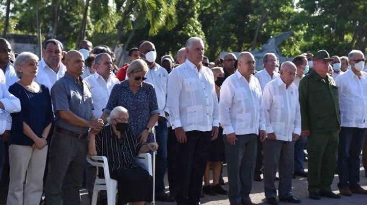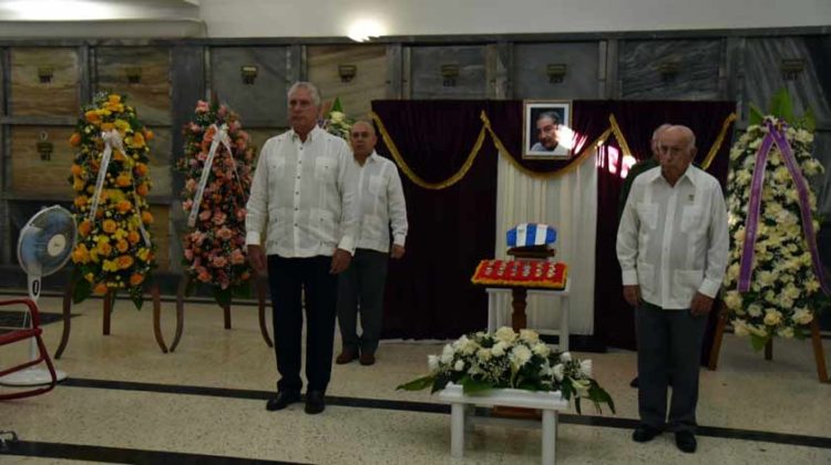 El mandatario cubano formó parte de la guardia de honor en tributo al combatiente revolucionario de la lucha clandestina y el Ejército Rebelde.