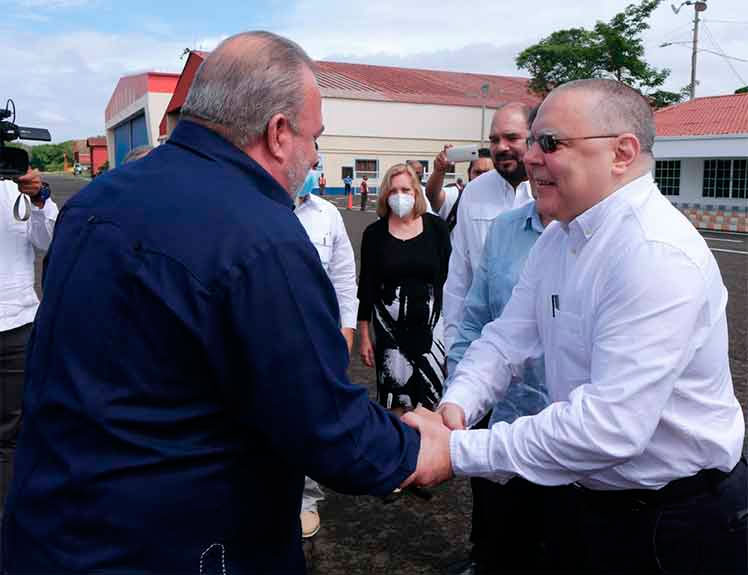 Recibieron al jefe de gobierno y a su comitiva, el presidente ejecutivo del instituto nicaragüense de seguridad social, Roberto López, además del embajador de Cuba en Nicaragua, Jorge Mayo.