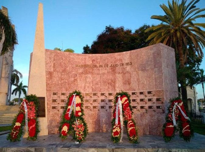 Como parte del tributo fueron colocadas ante el Retablo a los Mártires del 26 de julio de 1953 ofrendas florales a título del General de Ejército Raúl Castro, así como del Primer Secretario del Comité Central del Partido Comunista de Cuba y Presidente de República, Miguel Mario Díaz-Canel Bermúdez.