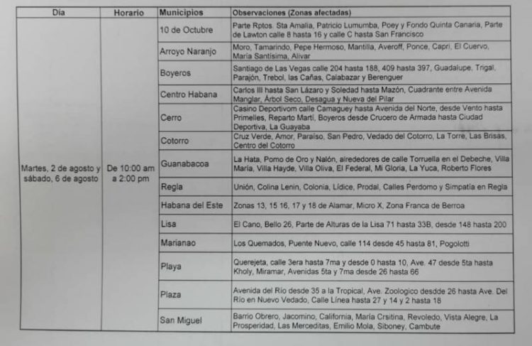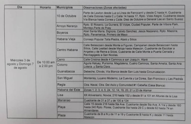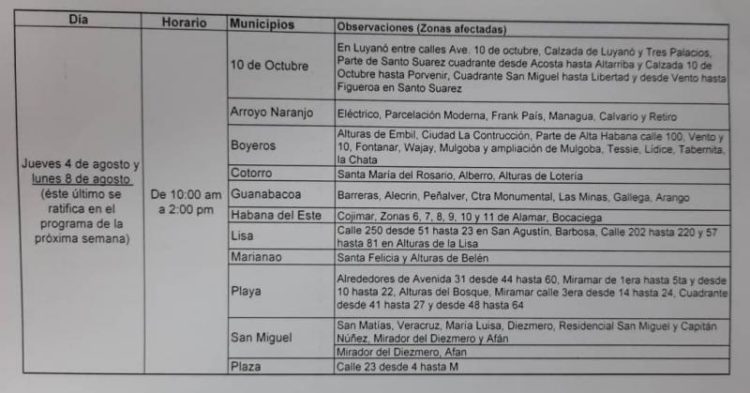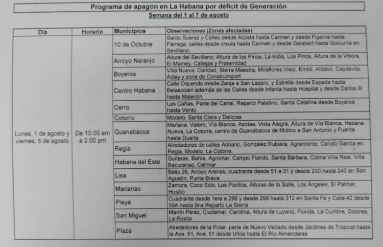 “Las vías de información, sobre estas interrupciones del servicio eléctrico, se darán a conocer por los medios locales de divulgación y los de nuestra empresa. Los viernes tendremos dispuesto el programa de afectaciones, de la semana entrante, que daremos a conocer a través de Canal Habana, Tribuna de La Habana y la Radio provincial. Todos los días iremos puntualizando, en estos medios, las afectaciones de la jornada siguiente.