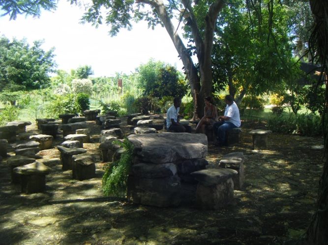 Una de las áreas más acogedoras de este sitio es la pradera de las esculturas —febril conjugación de arte y naturaleza—, en la que tanto los integrantes del taller de cerámica, como los que lo han visitado —entre ellos grandes maestros de la plástica insular— han dejado su impronta en piezas de medianos y grandes formatos en barro cocido. El conjunto está próximo a un fastuoso salón de conferencias al aire libre, bajo una profusa arboleda, construido —butacas y mesas— con piedras extraídas del lugar.