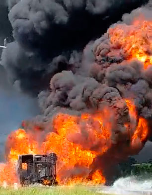 Esta mañana se produjo el accidente de un camión rígido cisterna matricula B231121 de TRANSCUPET, transportaba nafta solvente de uso industrial. Se produjo en la Vía Blanca, cerca del puente de Canasí. No hay pérdida de vidas humanas. pic.twitter.com/Kn4kJfPbIT