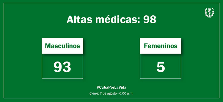 Hasta las 10:00 a. m. del 7 de agosto fueron atendidas 122 personas, de ellas 24 se encuentran hospitalizadas y 98 pacientes recibieron el alta médica.