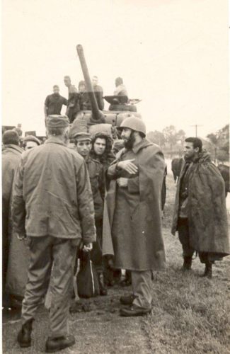 “Habla con los damnificados. Su presencia contribuye a levantar los ánimos. En Chamberlain, una de las ciudades afectadas por la crecida, el primer ministro (Fidel había asumido ese cargo en febrero) elogia el esfuerzo de los comandos de emergencia del Ejército que auxilian a las víctimas del desastre. Las tropas en formación, le rinden honores a los acordes del himno nacional del Uruguay. –Esta misión, comenta Fidel, ayudar y servir al pueblo en su infortunio, es la más alta tarea que puede realizar un ejército en América”.