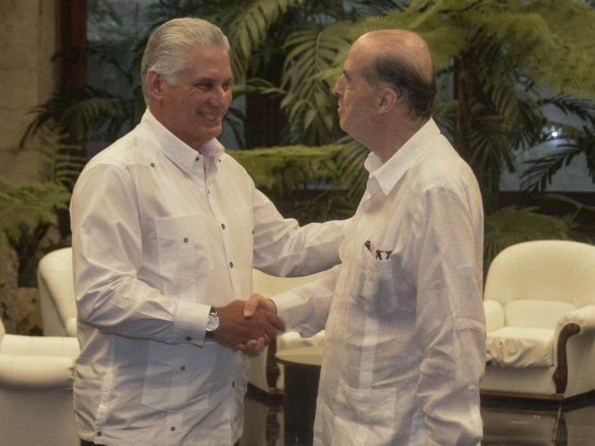 «Agradecemos —expresó a Díaz-Canel— que usted hoy reitere el apoyo de Cuba al proceso de paz en Colombia». Y hablando de tal gesto, definió: «Lo consideramos sincero, altruista, así lo valoramos, y esperamos que eso nos ayude en el proceso que viene».