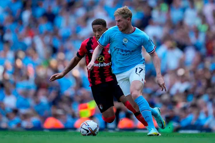El otro tanto azul llegó en el tiempo complementario (79), poco después de la salida del noruego Erling Haaland, cuando un centro chut del defensa portugués Joao Cancelo lo tocó el colombiano Jeferson Lerma y entró en propia puerta.