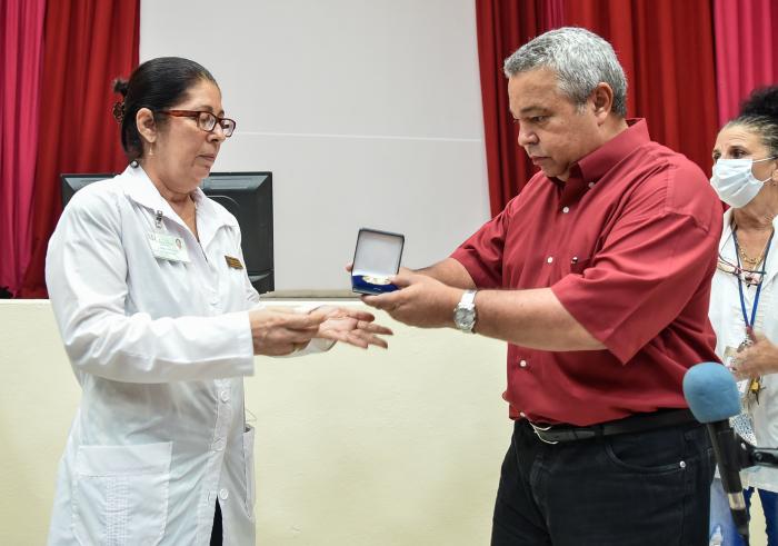 El máximo representante del movimiento obrero en el archipiélago cubano entregó el sello Aniversario 80 de la CTC, en reconocimiento a los resultados obtenidos por el centro, el cual fue recibido por la doctora Odalys González Peña, directora de la institución hospitalaria.
