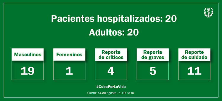Se encuentran hospitalizados los 20 pacientes en seis instituciones de salud del país.