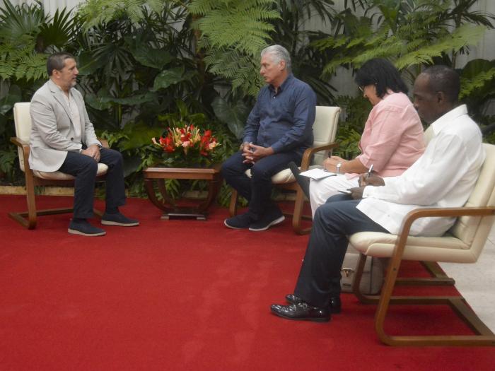 El amigo de Cuba afirmó a Díaz-Canel: «Para mí es un honor estar con ustedes»; y transmitió el saludo de toda la Asociación Nacional y de los presidentes de la ANAIC que le han precedido y que tienen una larga historia de solidaridad con Cuba.
