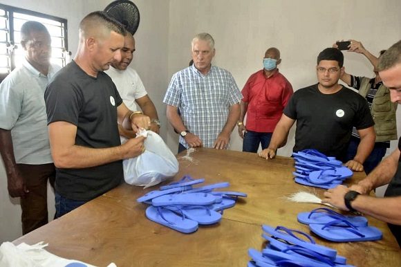 Díaz-Canel llegó también hasta la mediana empresa privada Jireh-Ebenezer, que confecciona calzados.