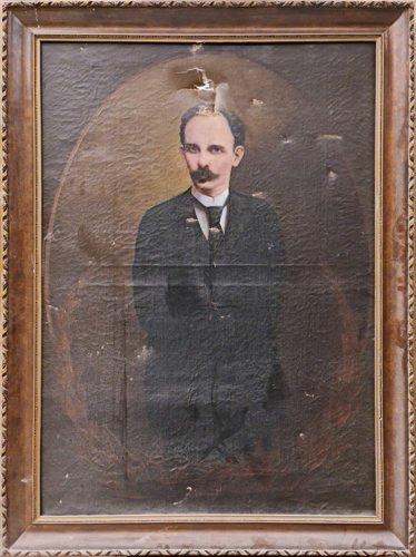 La pieza, del pintor cubano Miguel Díaz Salinero (1874-1944) es una apropiación de la fotografía tomada en 1892 a José Martí, en Kingston, Jamaica. El artista, alumno de Leopoldo Romañach (1862-1951), dedicó gran parte de su obra a desarrollar este tipo de trabajos iconográficos, especialmente del Héroe Nacional, sobre quien realizó algo más de una decena de piezas, algunas de las cuales integran la colección del Museo Casa Natal de José Martí.