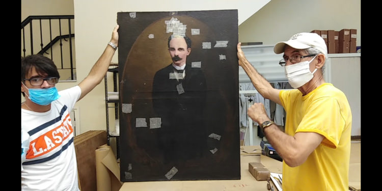 Tras algo más de dos meses de intenso quehacer en el taller de restauración de pintura de caballete de la Oficina del Historiador de la Ciudad, el lienzo del Apóstol que presidía el vestíbulo del Teatro Martí, ha recuperado su apariencia original y se encuentra listo para ser exhibido.