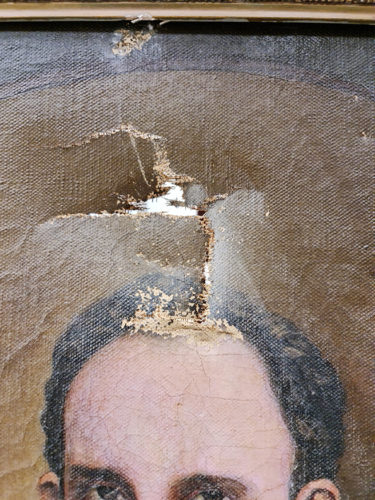 Según Juan Carlos Bermejo, director del taller de restauración de pintura de caballete, el cuadro recibió varios impactos e incrustaciones de cristales y materiales sólidos. «El daño más grave estaba en la zona de la cabeza, pero había afectaciones dispersas por toda la superficie y el marco».