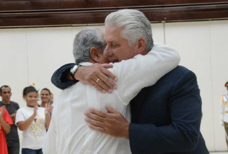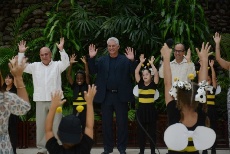 Miguel Díaz-Canel Bermúdez, Primer Secretario del Comité Central del Partido Comunista de Cuba (PCC) y Presidente de la República, asiste hoy a la imposición de la Orden Félix Varela de Primer Grado a la Compañía de Teatro Infantil La Colmenita, en el Salón de Protocolo El Laguito en esta capital.