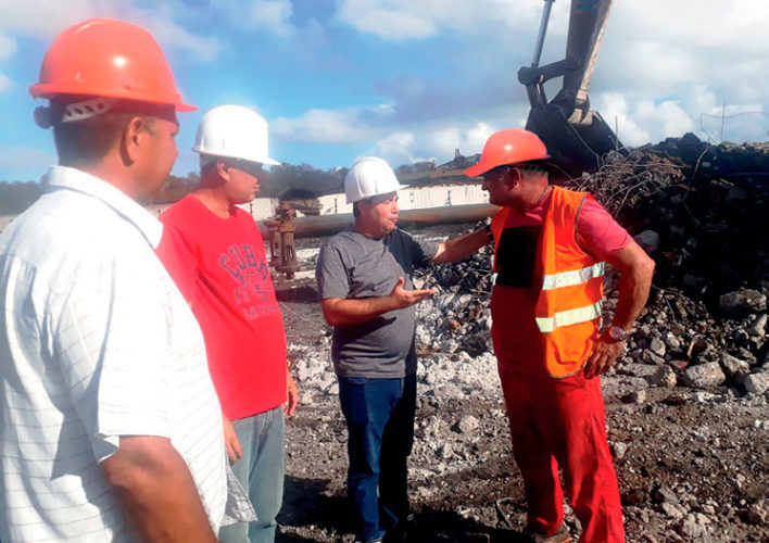 Esa actitud permite presumirlo. Culminarán en 30 días. “Nos toca terminar de demoler las edificaciones dañadas, de conjunto con Materia Prima, que entra y recupera el acero, la chatarra, y nosotros saneamos el área, recogemos los restos de hormigón armado, damos conformación mediante echado de tierra y luego se pasa a la nivelación del terreno”.